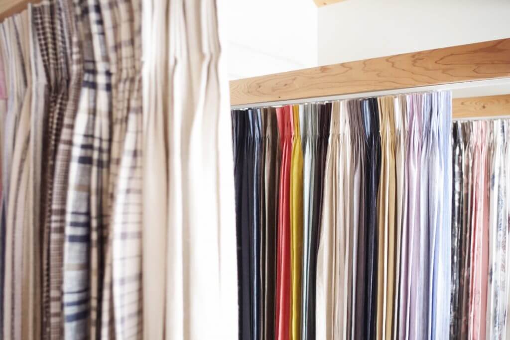 - 小さな端切れや尺角サンプルだけでは、大きな窓に吊るしたイメージが湧かない。