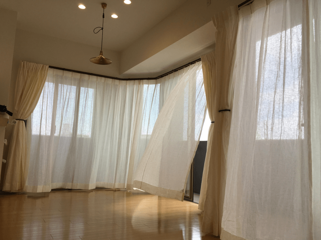 3mを超える大きな十字の角窓にリネン100%のカーテンが欲しくてliflinさんに出会いました。