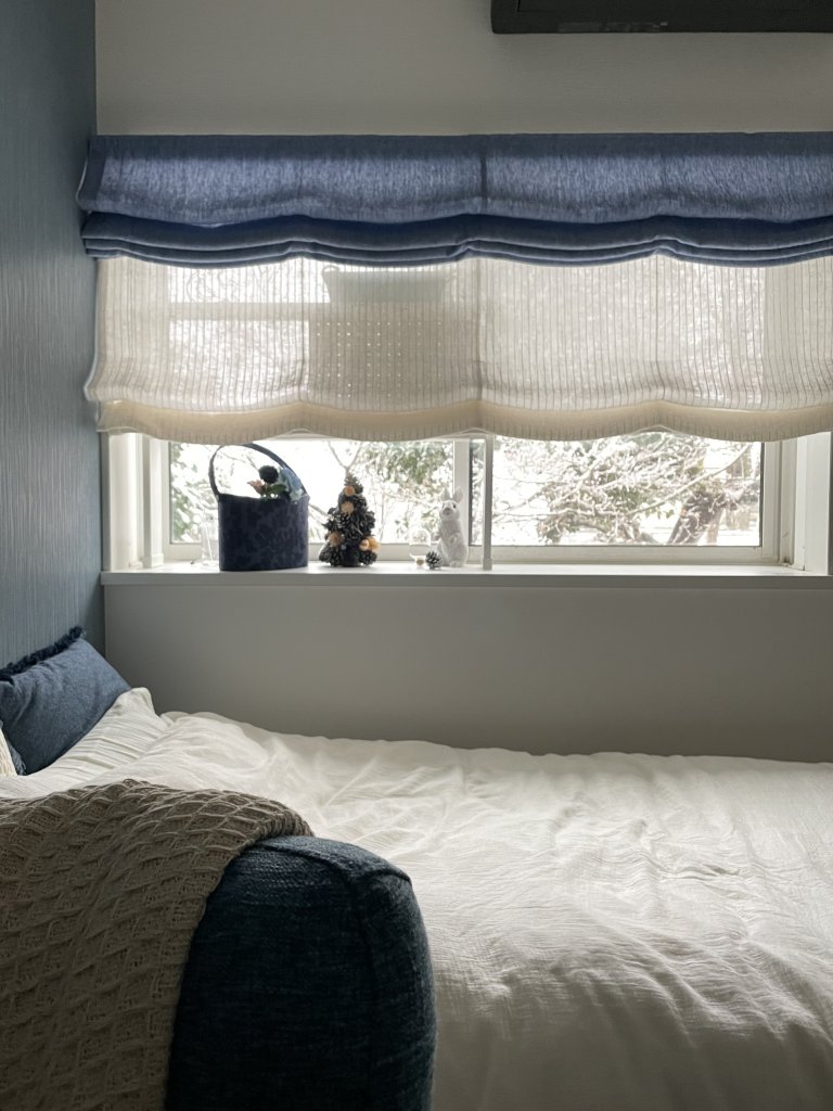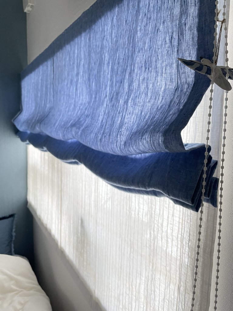 4年前のリフォーム時、偶然にもリネンカーテンフェアをやっていて娘が一目惚れ!大好きなブルーを選びました♪