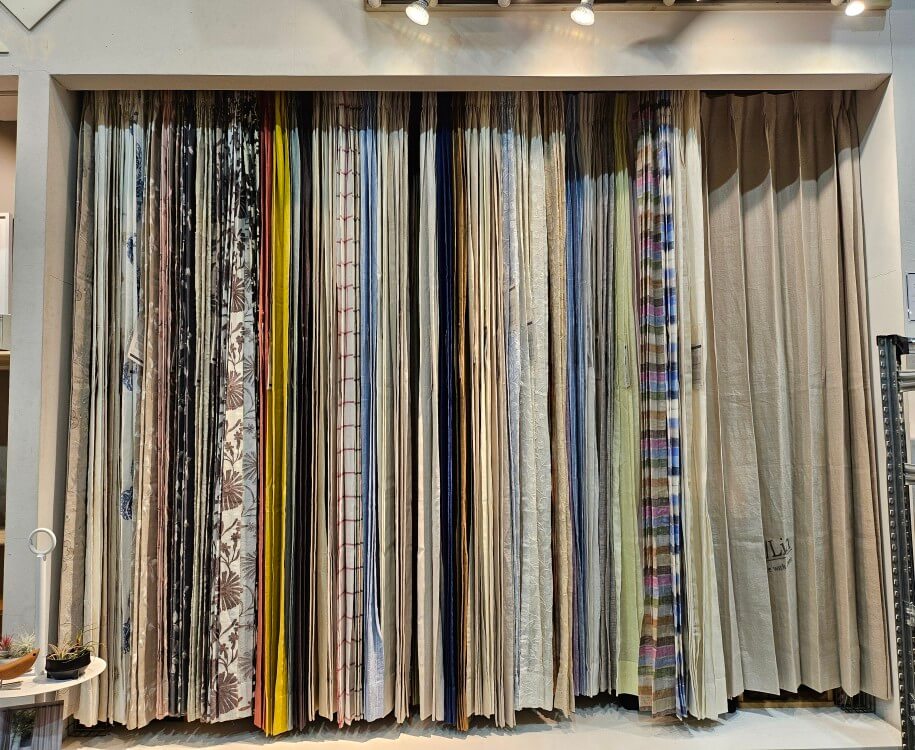 リネンは縮むのが心配…という方もご安心ください。会場では、防縮加工を施した生地や、リネンカーテンのお手入れ方法についても会場には、プロのカーテンコーディネーターがおりますので、そもそものカーテンのことやリネン素材に対する不安疑問点などもお気軽にご相談くださいませ。