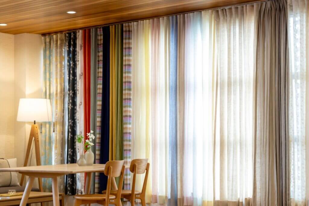 - 小さな端切れや尺角サンプルだけでは、大きな窓に吊るしたイメージが湧かない。