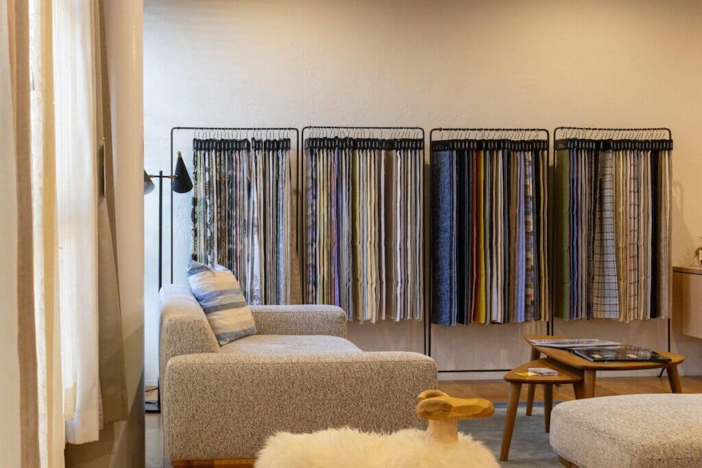 一度取り付けると買い替えにも長い時間要するカーテン。全柄が1m以上のヘッダーサンプルまたは、2mの縫製済みサンプルでリネン特有のその透け感も実際に体感いただけます。