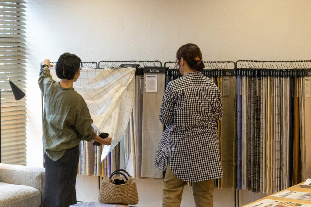 リネンは縮むのが心配…という方もご安心ください。会場では、防縮加工を施した生地や、リネンカーテンのお手入れ方法についても会場には、プロのカーテンコーディネーターがおりますので、そもそものカーテンのことやリネン素材に対する不安疑問点などもお気軽にご相談くださいませ。