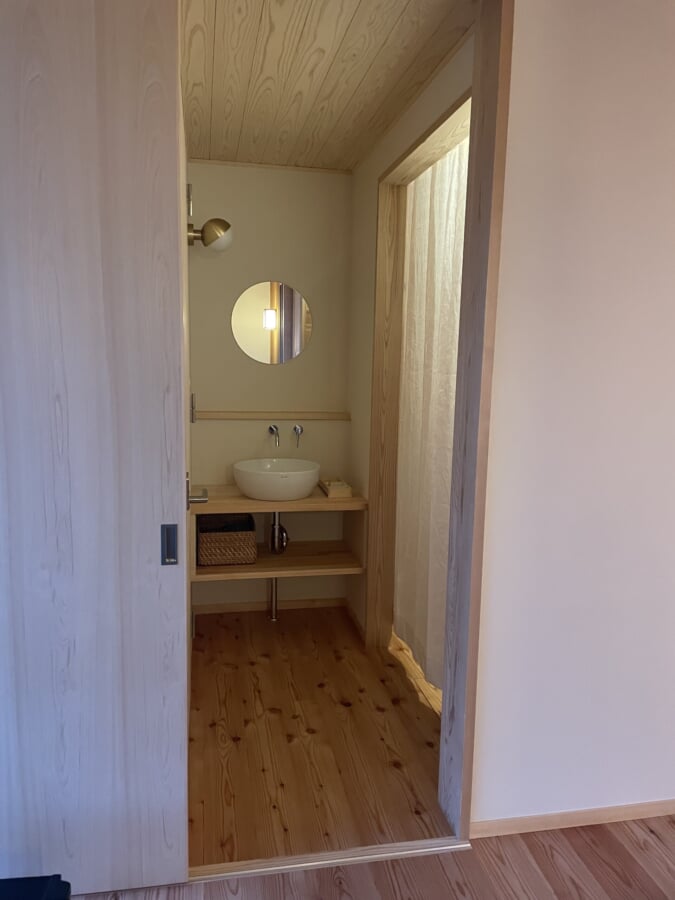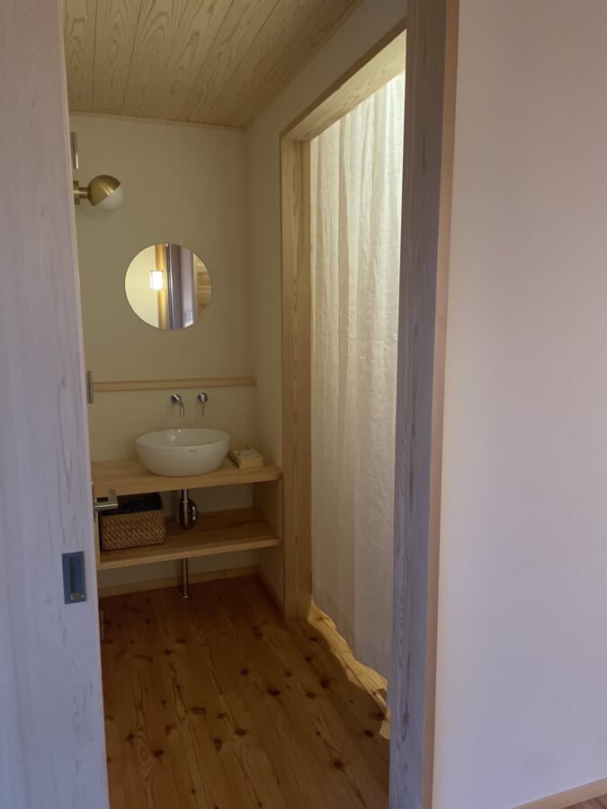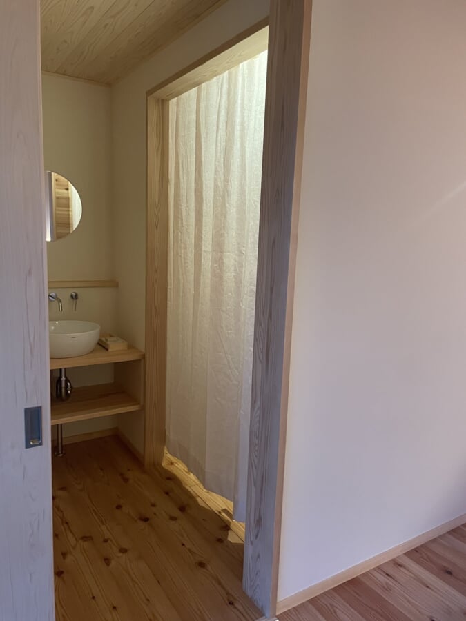 オンラインでの購入は届くまで不安もありますが、イメージ通りのものがご提供できて安心しました。自然素材を多く使っているお宅なので、リネンカーテンも馴染んでいますね。リネンカーテンは使い込むことで風合いも変わってきますので、床材等の自然素材と共にリネンカーテンの経年変化もお楽しみいただければ幸いです。