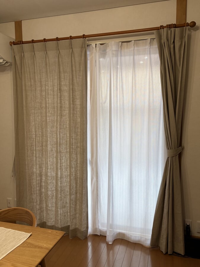 リフォームをきっかけにカーテンも取り替えたくて、何となくカーテンを探していたら、リネンカーテンをお店で見つけて、一目惚れしてしまいました。自然な風合いがナチュラルな雰囲気にピッタリ合って、大満足です。