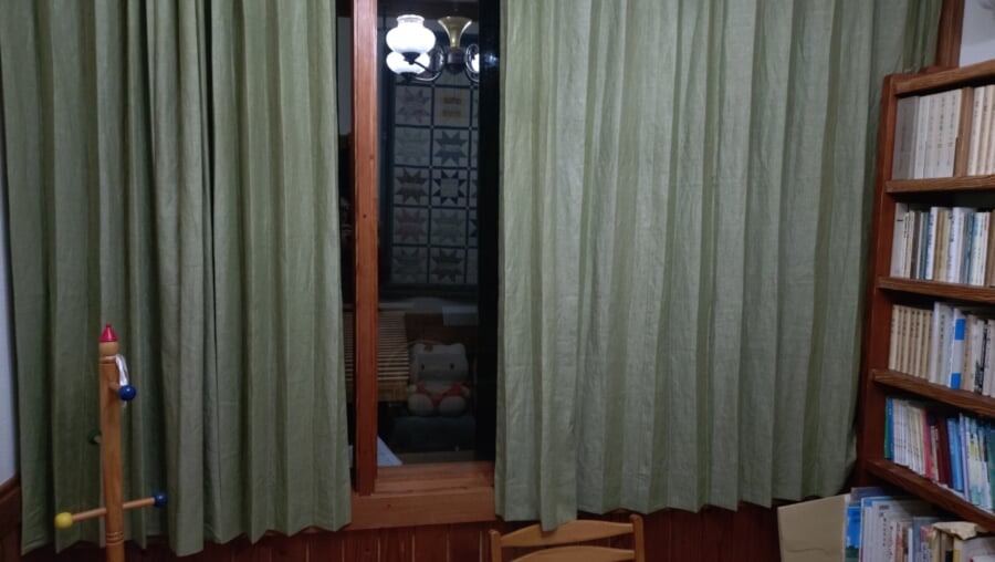 自然素材なので木の壁や木製のサッシなどとよく合っていますね!また今回選んでいただいたLL2133は厚みもあるため、室内が見える心配はないですが、適度に外の気配を感じられるので、N様がおっしゃるように重たく感じることもないですよね。これからもリネンカーテンのある暮らしを存分にお楽しみいただければ幸いです。